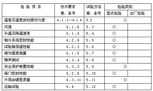 注:高低溫測試儀要求檢驗的項目用“○”表示,無“○”者表示不要求檢驗。