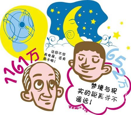 俗話說“有心栽花花不成,無心插柳柳成蔭”,購彩過程往往也如是,精心選擇的號碼不一定中獎,偶爾或隨意選的號卻往往帶來意外驚喜;有些人為中獎殫精竭慮一無所獲,也有些人稀里糊涂地就被大獎砸中了。 原想要臺電扇卻得了1100萬 江蘇省體彩為了回饋彩民而開展“買大樂透送電扇”的活動,無錫的張大爺就是沖著電扇買了一張12元的復式票,然后再用剩余的3元錢又買了一注追加票。結果,這個“無心插柳”舉動的結果是:張大爺電扇沒中到,卻一舉中得大樂透11049期頭獎,獎金高達1161萬元。 張大爺已經買了好幾年彩票,但每次數額都不大,從沒有超過10元錢,更別說什么復式票了。不過眼下的買大樂透送電扇活動還是挺吸引張大爺的,只要買6碼的復式票就有機會中臺電扇!安痪褪嵌嗉訋讐K錢嗎?正好夏天也來了,中臺電扇還是不錯的!睆埓鬆斣局皇潜е@樣的想法。 4月30日這天,他獨自一人來到了02777銷售站點,在仔細咨詢過之后,掏出了15塊錢,打了一張最小的6碼的12元復式票。 這張復式票很快就被打了出來,遺憾的是序列號的后兩位并不是“88”,所以沒中得電扇。銷售員見張大爺很失望就安慰他:“你正好還有3塊錢零錢,不如再來1注追加吧!睆埓鬆敭敃r的情緒不高,還以為站點忽悠他呢,不過想想這3元錢雖然不能買復式,隨機還是可以買的,就這樣,一張隨機的3元票出爐了。 第二天開獎,張大爺認真核對中獎號碼后樂開了花?吹剿呐d奮樣子,老伴問是不是中了1000多元?張大爺回答道:“你少說了個萬字。” 夢到中獎號堅守4年有回報 有人為了中獎費盡心思,可也有人僅憑著夢里的一組號碼,竟然意外中得大獎。5月7日中得大樂透11052期一等獎的吉林彩民張先生就是這樣一位幸運的彩民。 “要不是我媳婦用手機上網看到了開獎信息,我到現在還不知道中獎呢!”提起中得超級大樂透652萬元的獎金,張先生笑得合不攏嘴!拔屹I彩票的號碼,我媳婦都知道,平時我忙,雖然買了彩票,但是總是忘記兌獎,這回多虧我媳婦看到開獎號,不然說不定錯過大獎呢。” |