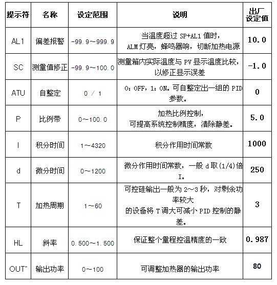 鼓風干燥箱各項功能參數一覽表